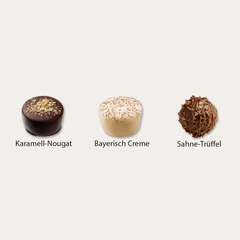 Im edlen bayrischen Design kommen die köstlichen Pralinen aus dem Hause Confiserie Heilemann: